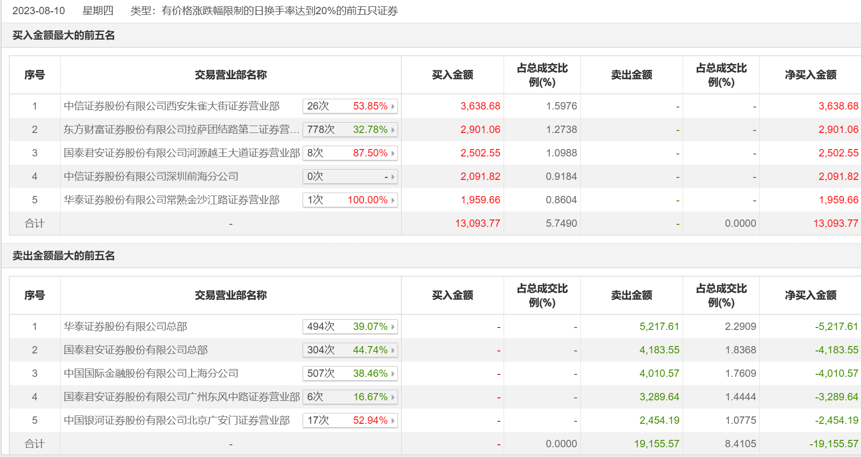 8月10日,信达证券今日涨7.79%,龙虎榜数据显示,上榜营业部席位全天成交3.22亿元,占当日总成交金额比例为14.16%。其中,买入金额为1.31亿元,卖出金额为1.92亿元,合计净卖出6061.8万元。