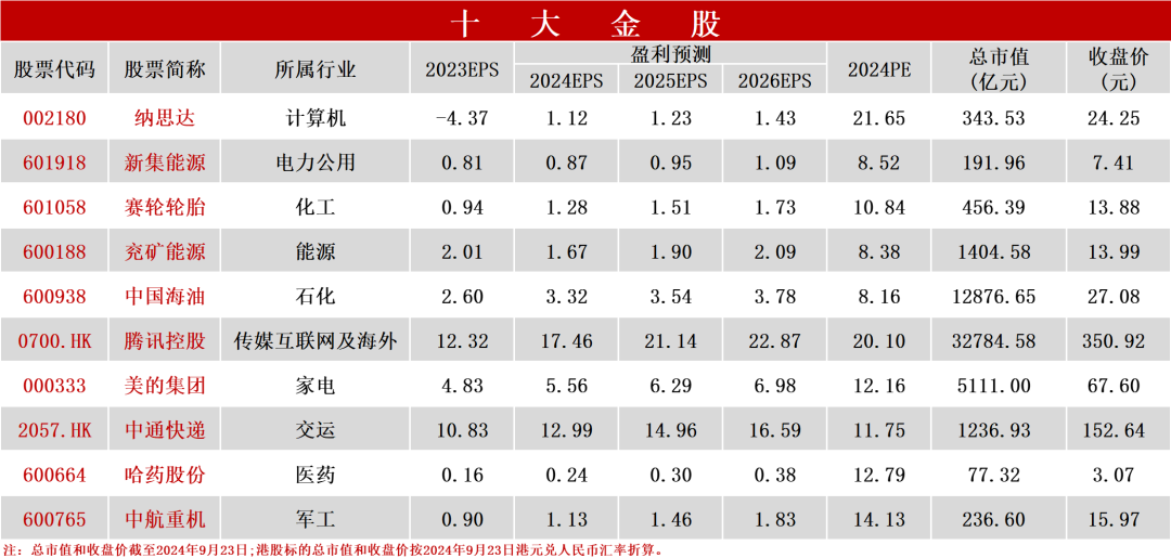 信达证券2024年10月金股