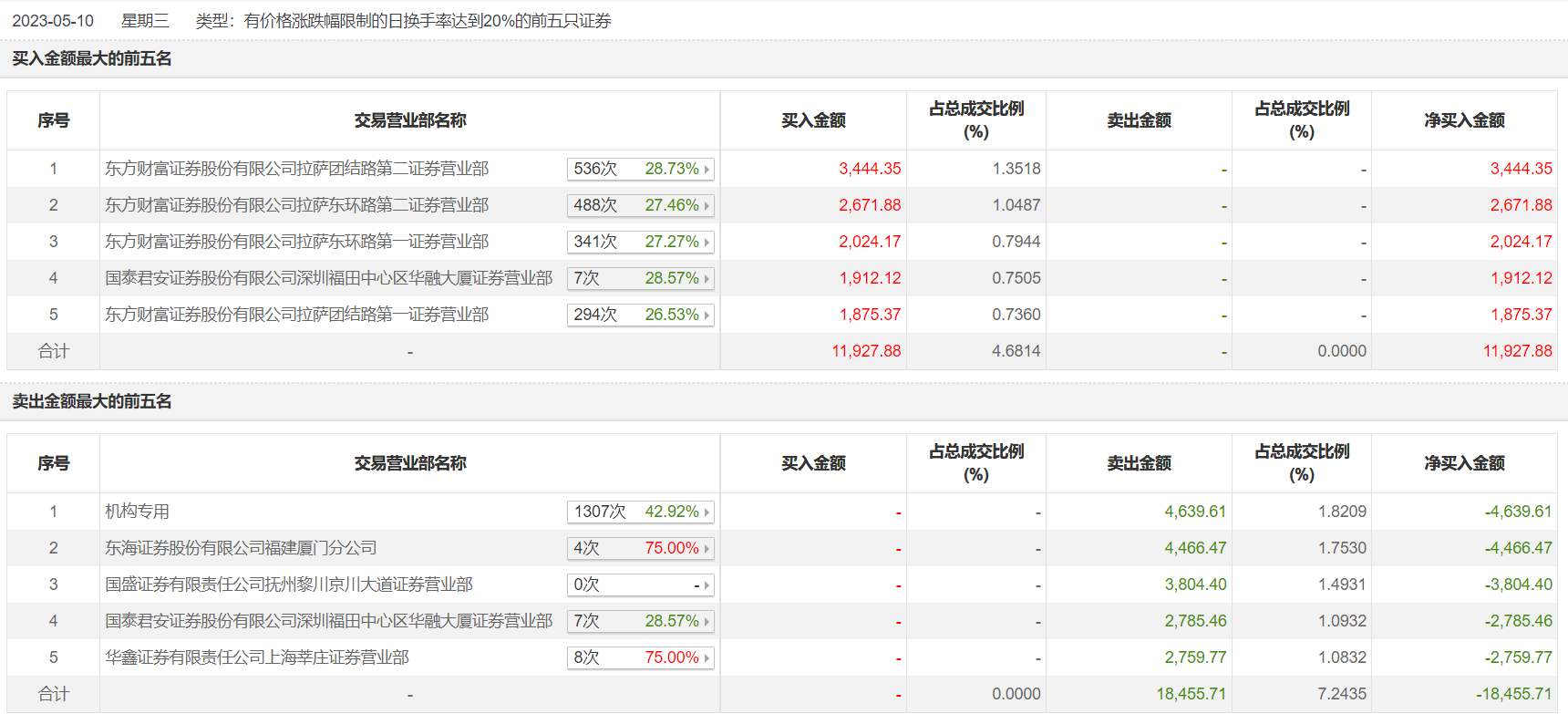 具体来看,机构合计净卖出4639.61万元。此外,东方财富证券拉萨团结路第二证券营业部、东方财富证券拉萨东环路第二证券营业部分别买入3444.35万元、2671.88万元;东海证券福建厦门分公司、国盛证券抚州黎川京川大道证券营业部分别卖出4466.47万元、3804.40万元。
