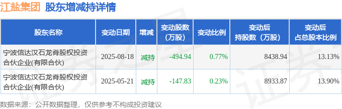 截至2025年11月19日收盘,江盐集团(601065)报收于8.81元,上涨0.8%,换手率1.73%,成交量7.22万手,成交额6332.46万元。