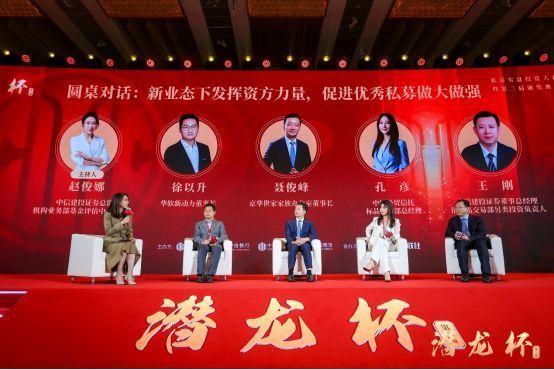 圆桌论坛环节,华软新动力董事长徐以升、京华世家董事长聂俊峰、中国外贸信托标品投资部总经理孔彦和中信建投证券董事总经理、衍生品交易部另类投资负责人王刚分别从不同资方视角分享了他们对私募证券基金行业未来发展的观点与看法。