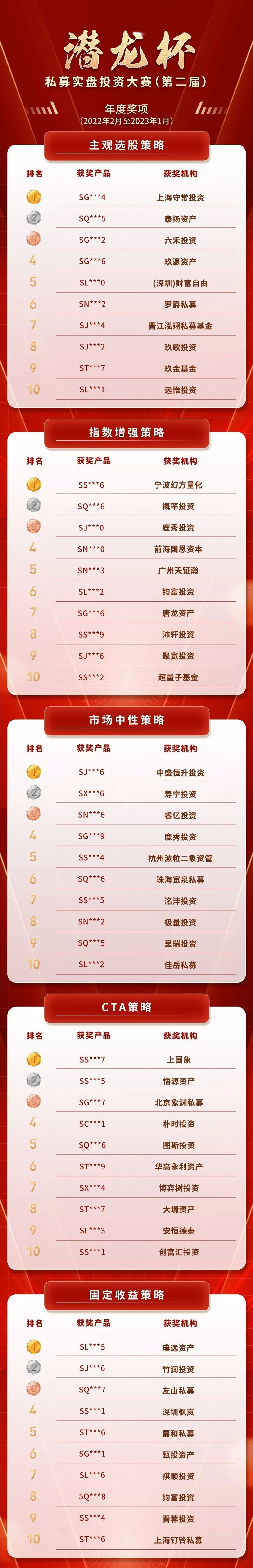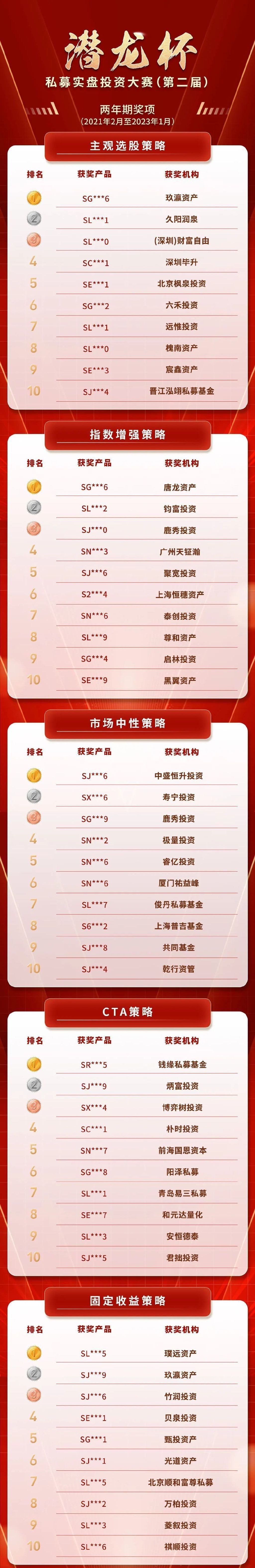 附:第二届“潜龙杯”私募实盘投资大赛年度及两年期奖项获奖榜单