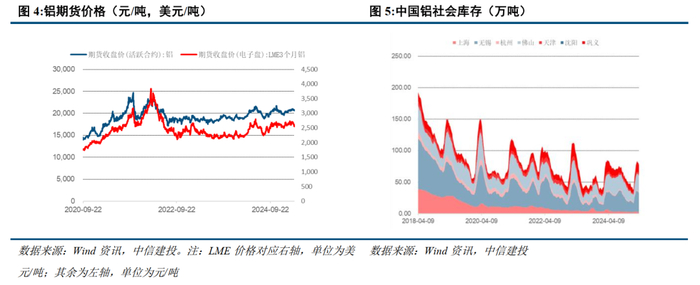 工业金属:本周LME铜、铝、铅、锌、锡价格变化为-0.6%、-2.9%、-0.1%、-2.4%、5.3%;工业金属价格由“金融属性”及“商品属性”共同决定,从金融属性来看,美联储已开启降息周期;从商品属性来看,全球铜铝库存均处于相对低位,中国经济复苏可期,叠加新能源行业的拉动,铜铝需求增长将有所好转。