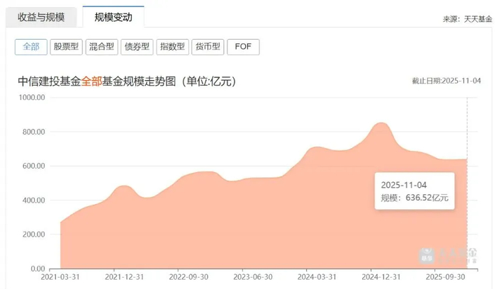 截至2025年11月,中信建投基金的公募管理规模定格在636.52亿元,在全行业排名中段。