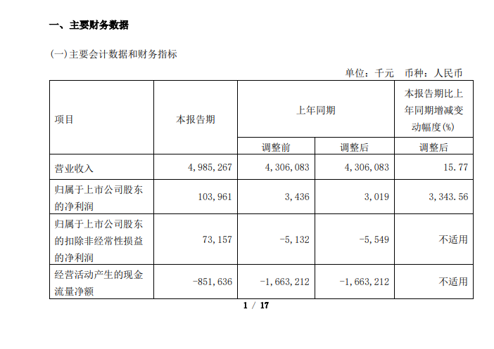 注:中铝国际的表现中铝国际在昨日晚间发布一季度业绩,其中营业收入49.85亿元,同比增长15.77%;实现归属于上市公司股东的净利润1.04亿元,同比增长33.43倍;扣除非经常性损益后归属于上市公司股东的净利润为0.73亿元,同比增长0.78亿元。