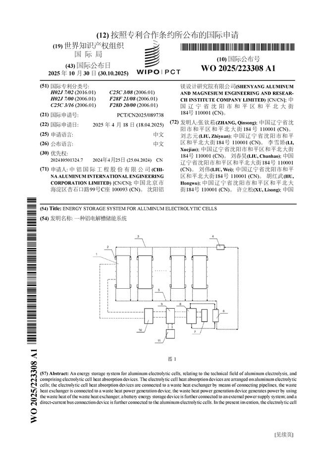 中铝国际公布国际专利申请:“一种铝电解槽储能系统”