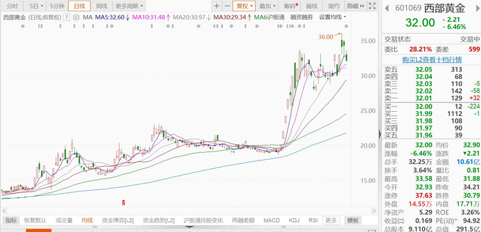 A股异动丨西部黄金跌逾6%,大股东兼董事计划减持不超过2%公司股份