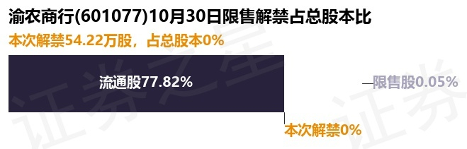 渝农商行(601077)54.22万股限售股将于10月30日解禁,占总股本0%