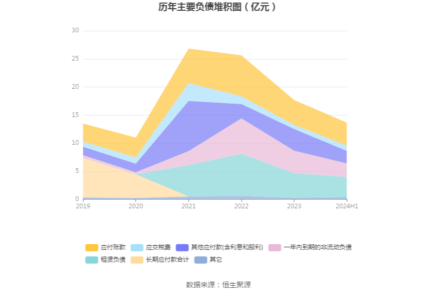 负债重大变化方面,截至2024年上半年末,公司其他应付款(含利息和股利)较上年末减少42.39%,占公司总资产比重下降1.53个百分点;一年内到期的非流动负债较上年末减少39.30%,占公司总资产比重下降1.46个百分点;租赁负债较上年末减少18.79%,占公司总资产比重下降0.65个百分点;应付账款较上年末减少7.82%,占公司总资产比重下降0.15个百分点。