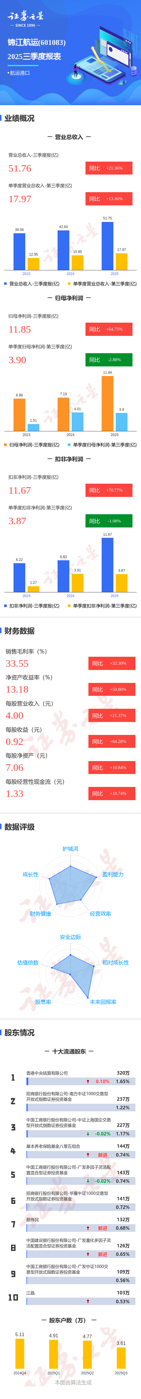 图解锦江航运三季报:第三季度单季净利润同比下降2.89%