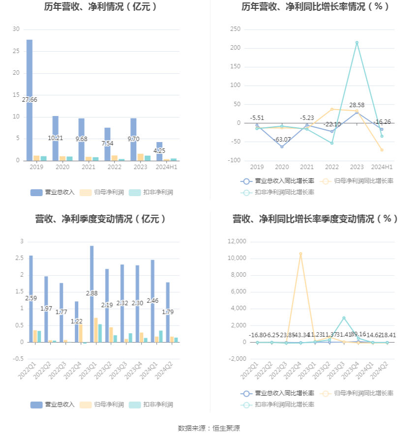 根据半年报,公司第二季度实现营业总收入1.79亿元,同比下降18.41%,环比下降27.43%;归母净利润1662.73万元,同比下降62.95%,环比下降2.43%;扣非净利润1353.97万元,同比下降35.70%,环比下降61.79%。