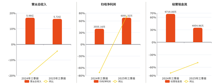 公司营业总收入为5.72亿元,在已披露的同业公司中排名第45,较去年同报告期营业总收入减少2600.55万元,同比较去年同期下降4.35%。归母净利润为6091.32万元,在已披露的同业公司中排名第31。经营活动现金净流入为4954.96万元,在已披露的同业公司中排名第41,较去年同报告期经营活动现金净流入减少4764.03万元,同比较去年同期下降49.02%。