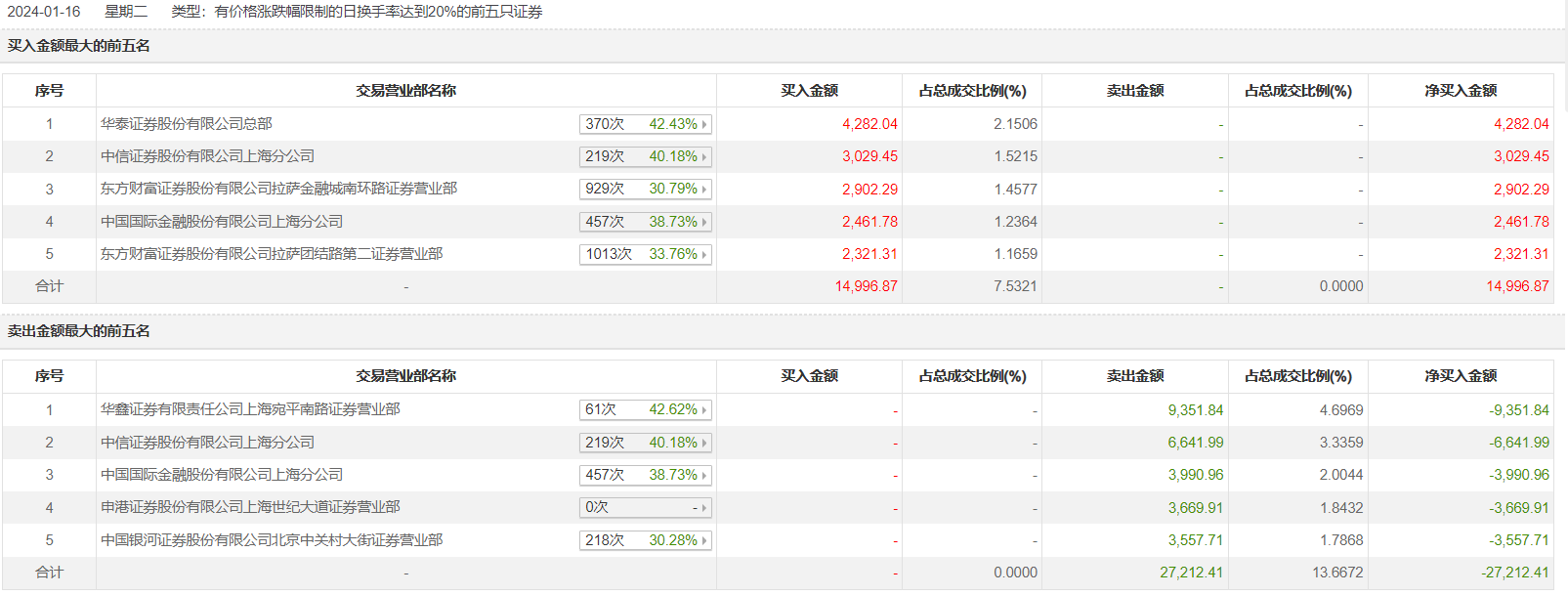 具体来看,知名游资现身龙虎榜,华泰证券总部、中信证券上海分公司分别买入4282.04万元、3029.45万元;炒股养家(华鑫证券上海宛平南路证券营业部)、中信证券上海分公司分别卖出9351.84万元、6641.99万元。