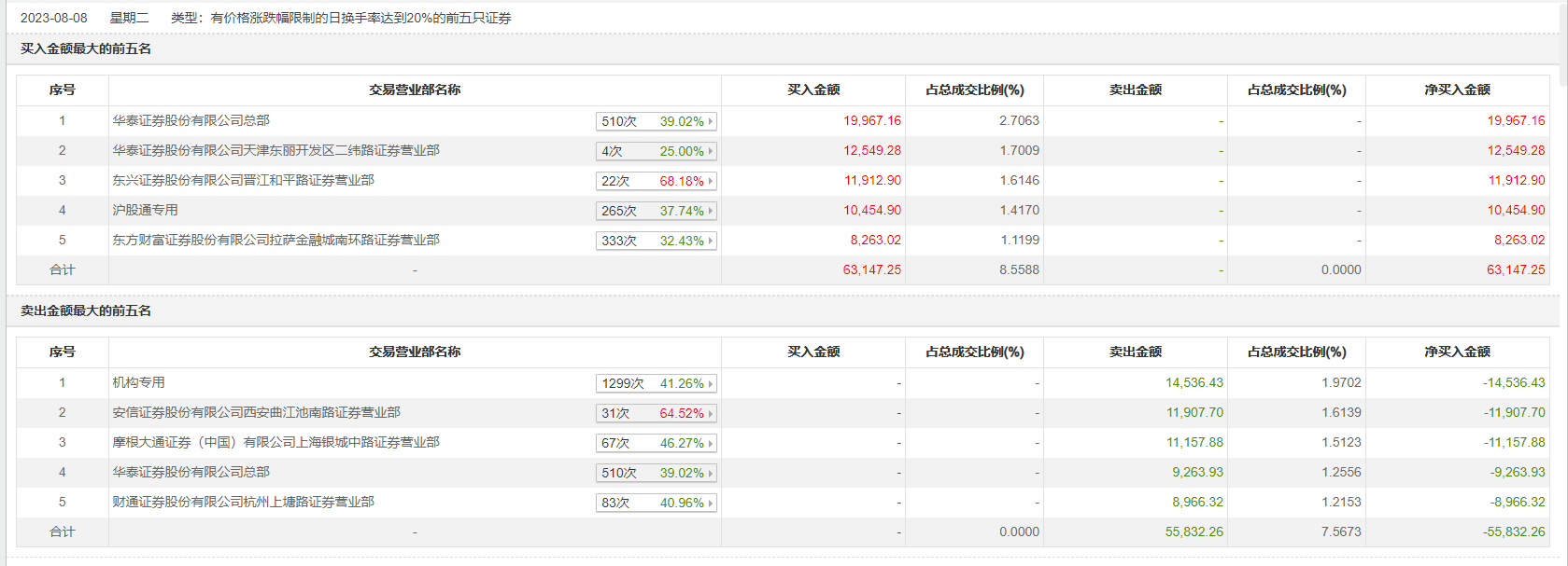 8月8日,太平洋今日跌8.23%,龙虎榜数据显示,上榜营业部席位全天成交11.9亿元,占当日总成交金额比例为16.13%。其中,买入金额为6.31亿元,卖出金额为5.58亿元,合计净买入7314.99万元。