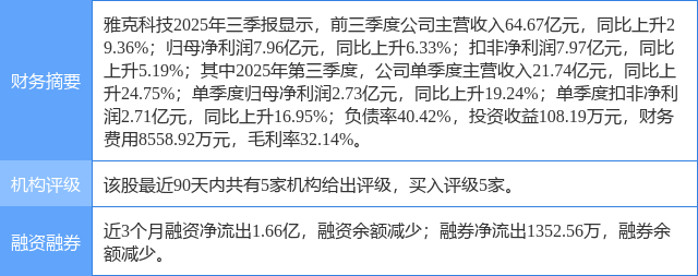 2025年11月11日,太平洋研究员王亮,王海涛发布了对雅克科技的研报《雅克科技2025年三季报点评:电子材料和LNG板材双轮驱动业绩持续增长》,该研报对雅克科技给出“买入”评级。研报中预计2025-2027年EPS分别为2.48元、3.00元、3.55元。维持“买入”评级。证券之星数据中心根据近三年发布的研报数据计算,该研报作者对此股的盈利预测准确度为68.87%。
