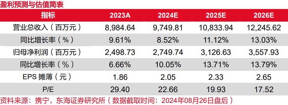 事件:公司2024上半年实现营收48.33亿元,同比增长8.56%;归母净利润达12.88亿元,同比增长0.71%,符合预期;2024上半年毛利率和净利率分别为41.64%和26.69%;2024第二季度实现营收24.71亿元,同比增长22.05%;归母净利润6.86亿元,同比增长5.00%。