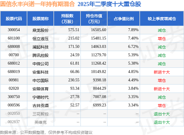 重仓恒立液压的前十大公募基金请见下表: