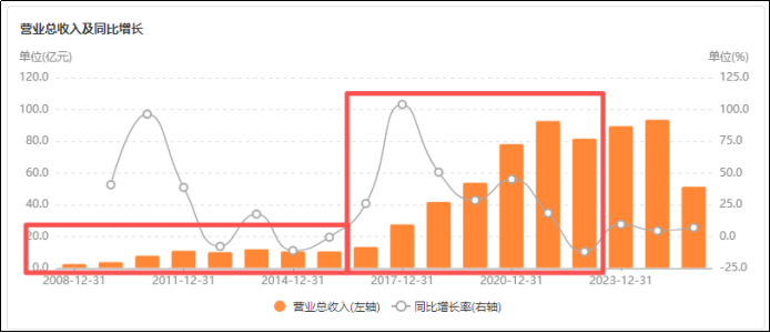 2015年攻克高压柱塞泵阀技术,2016年后批量供应三一、徐工等主机厂,客户增长,泵阀业务收入也从2016年的1.2亿元飙升至2021年的32.36亿元。这里还有出海渗透,公司进入卡特彼勒、小松等国际供应链,海外收入一直在增长,从2016年的1.64亿增长至2021年的12.35亿,2023年达到19.27亿。上一轮周期虽然国内业务在2022-2023年出现了明显下滑,但其海外业务持续增长,8年翻了10倍以上。在上行周期中,恒立液压的股价也大幅走高,从2016年年初的4块多一直上涨到2021年年初的130块以上,市值一度超1700亿。后面由于经济疲软、工程机械下行周期,市值也蒸发了三分之二。