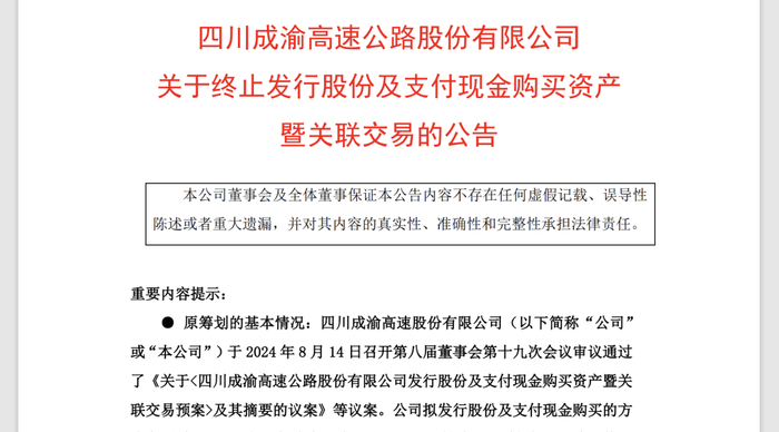重大资产重组终止后,四川成渝再次启动收购,24亿元现金收购荆宜公司股权