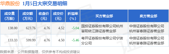 证券之星消息,1月5日华鼎股份发生大宗交易,交易数据如下: