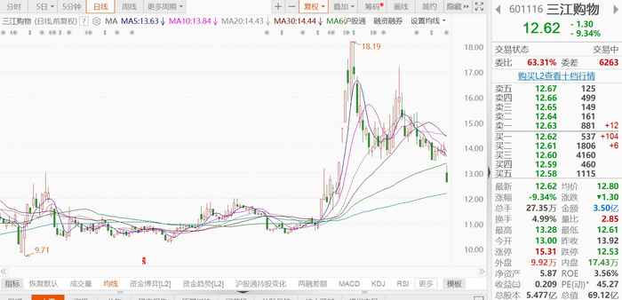 A股异动丨三江购物跌逾9%,股东阿里泽泰拟减持不超3%公司股份