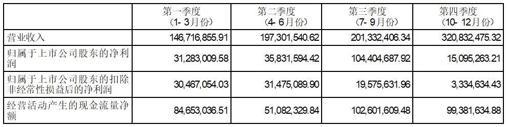 3.2 报告期分季度的主要会计数据