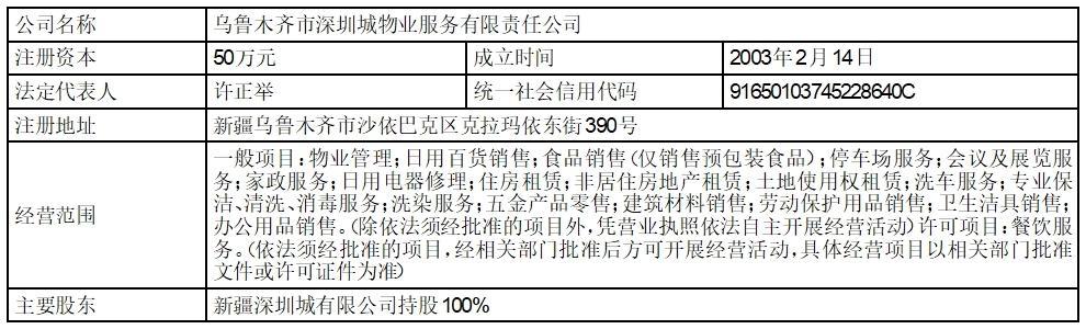 1、乌鲁木齐市深圳城物业服务有限责任公司