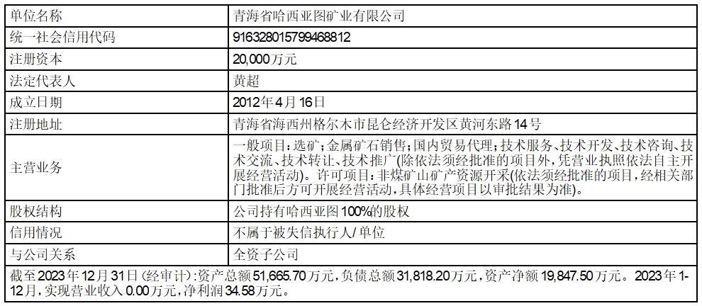 (二)青海省哈西亚图矿业有限公司