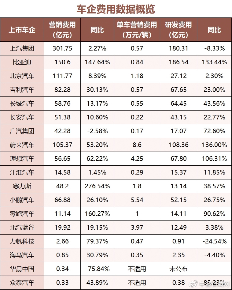 上图,是有权威性的《国际金融报》在今年4月做的一张表,里面有新旧势力的研发费用和增幅数据,可谓一目了然。