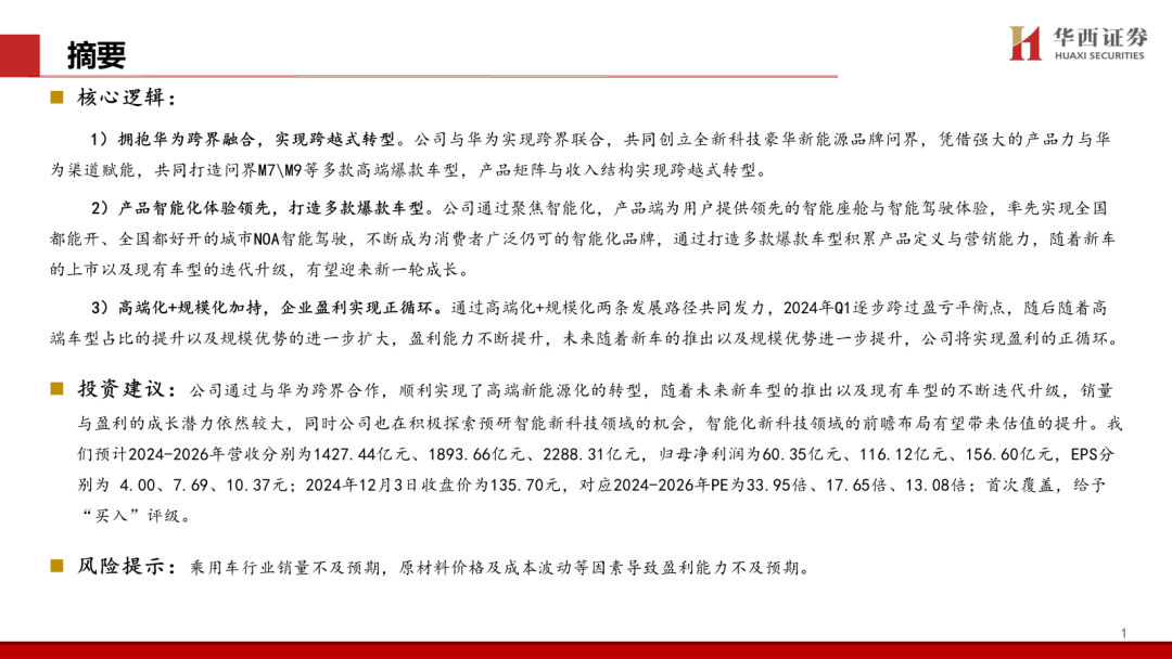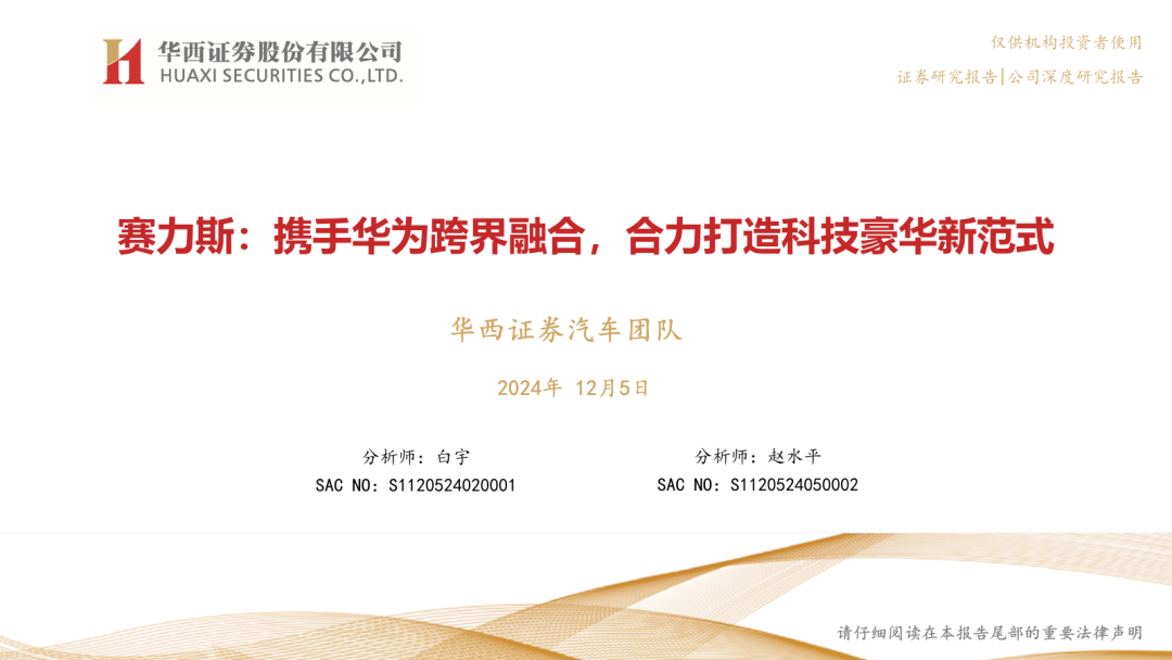 【华西汽车】赛力斯:携手华为跨界融合,合力打造科技豪华新范式