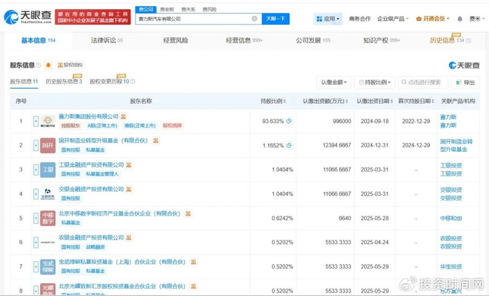 该公司成立于2012年9月,法定代表人为岑远川,注册资本约106.37亿人民币,由赛力斯(601127)、国开制造业转型升级基金(有限合伙)、工银金融资产投资有限公司等共同持股。