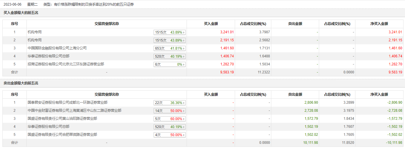 具体来看,机构合计净买入5432.16万元。此外,中国国际金融上海分公司、华泰证券总部分别买入1461.60万元、1406.74万元;国泰君安证券成都北一环路证券营业部、中国中金财富证券有限公司上海黄浦区中山东二路证券营业部分别卖出2806.90万元、2728.08万元。