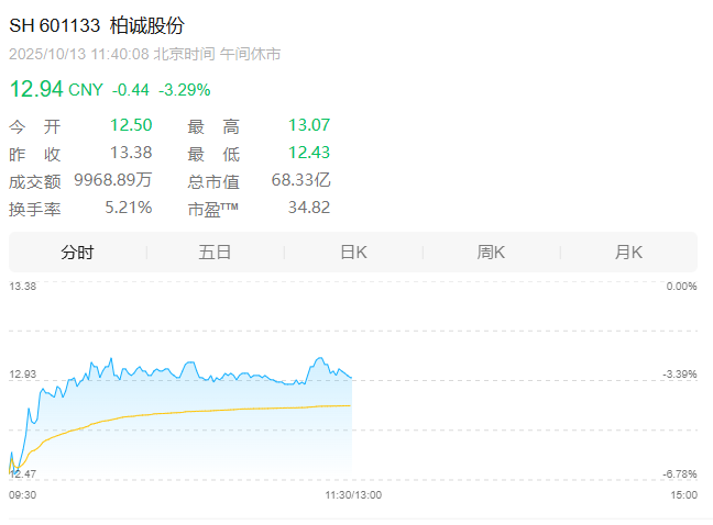 柏诚股份股票于今天(10月13日)起复牌,早盘大幅低开6.58%,截至午盘跌3.29%报12.94元/股,最新总市值68.33亿元。