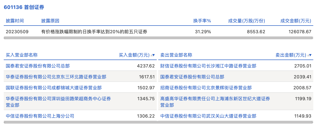 具体来看,国泰君安证券总部、华泰证券北京东三环北路证券营业部分别买入4237.62万元、1617.51万元;财信证券长沙湘江中路证券营业部、国泰君安证券总部分别卖出2705.01万元、2039.41万元。