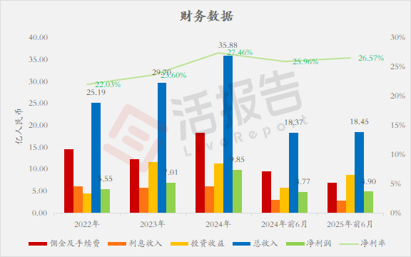 佣金及手续费分别约为人民币14.61亿、12.34亿、18.39亿、9.49亿、6.89亿,2025年前6月同比-27.40%;