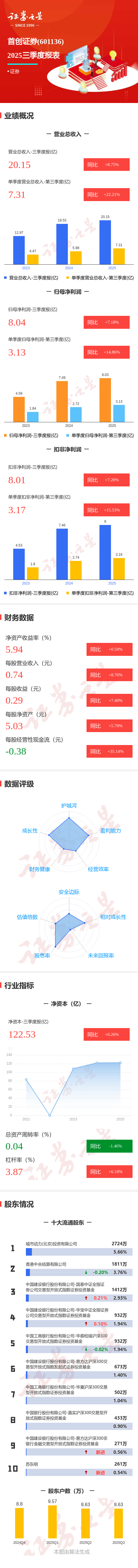 图解首创证券三季报:第三季度单季净利润同比增长14.86%