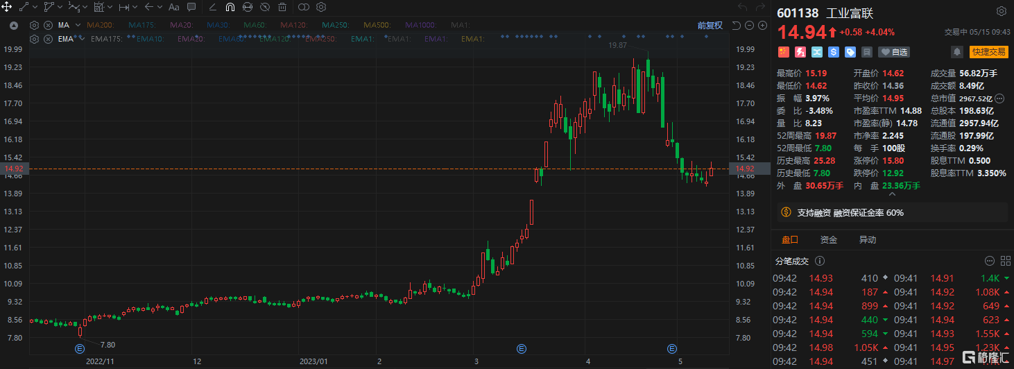 格隆汇5月15日丨工业富联(601138.SH)涨超4%,报14.94元,总市值2967亿元。据报道,富士康将再投资1亿美元在越南开设新工厂。