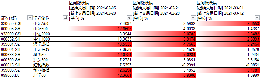 此外,深证成指在三个阶段涨幅都很靠前,与创业板指相得益彰。