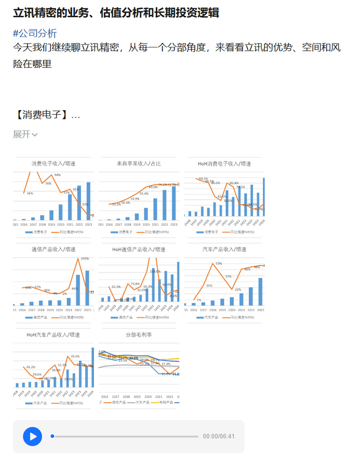 今天我们继续聊立讯精密,从每一个分部角度来看看立讯的优势、空间和风险在哪里。