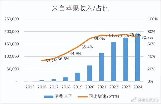 苹果这两年的收入可是走成了一条直线,立讯还能有两位数的增长,说明立讯在苹果的代工份额还是在增长的。