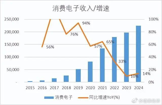总体而言,占比约75%的电子消费分部,未来年化增速大约10%,贡献7%-8%的收入增速。