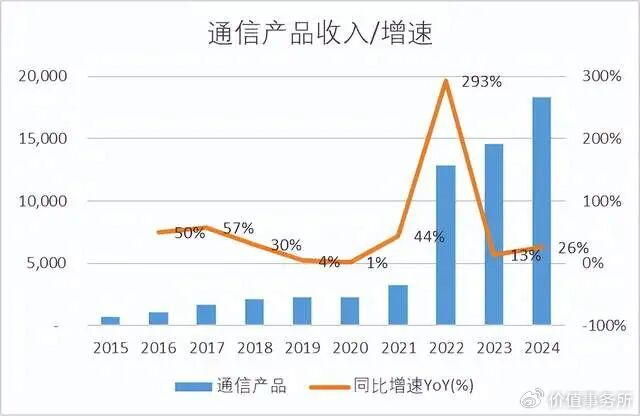 通信产品昨天已经提到了,是立讯目前最有亮点的业务部门。和消费电子相反,通信产品部门是在2022年以后收入起飞的,和公司2022年收购了汇聚科技也有关系。