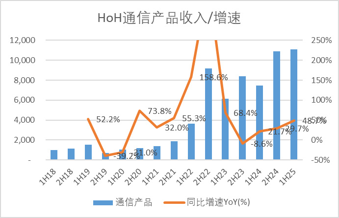 2025年上半年通信产品部门的收入是111亿,同比+48.7%,占总收入的比重为8.9%,毛利率公司没有披露,24年数据是16.4%,同比+0.6pct。