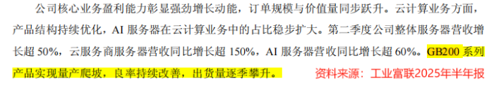 凭借这样的优势,工业富联成为GB200系列产品的重要制造商,产品已实现量产爬坡,良率持续改善,出货量正逐季攀升。