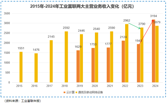 在服务器大厂的订单助力下,公司新兴云计算业务营收一举突破3194亿元,占总营收52.43%,一跃成为公司第一大主营业务。