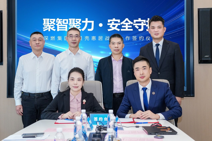 11月13日,以“聚智聚力安全守护”为主题的贝壳惠居深圳站与深圳市深燃创新投资有限公司战略合作签约仪式在深圳成功举行。深圳市燃气集团股份有限公司副总裁王文想、市场客服部总经理范晓晖,深圳市深燃创新投资有限公司总经理林苑,以及贝壳集团副总裁、东南区域总经理兼深圳公司总经理戴明奎,贝壳深圳公司副总经理、党支部书记莫雨纯,贝壳惠居深圳站总经理祁俊龙等嘉宾共同出席仪式,标志着双方在租住场景下燃气安全领域的深度合作正式启动。