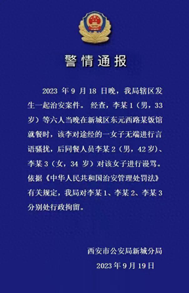 西安新城警方通报“男子就餐时对一女子无端进行言语骚扰”