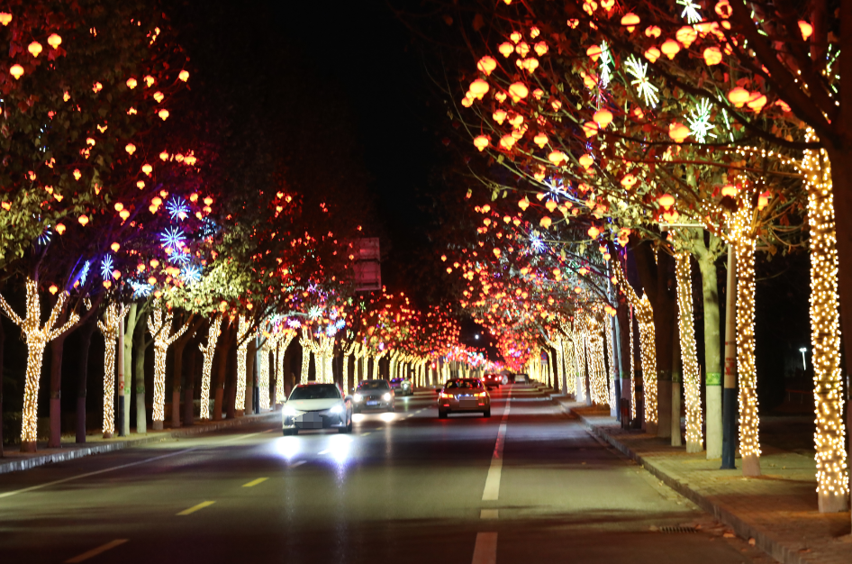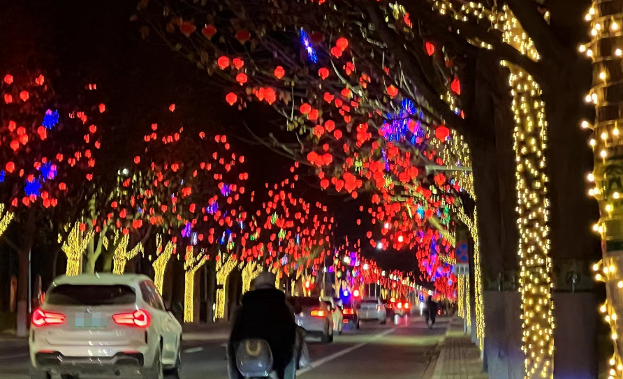 亦庄新城三太路彩灯亮了,瞬间有了年味儿