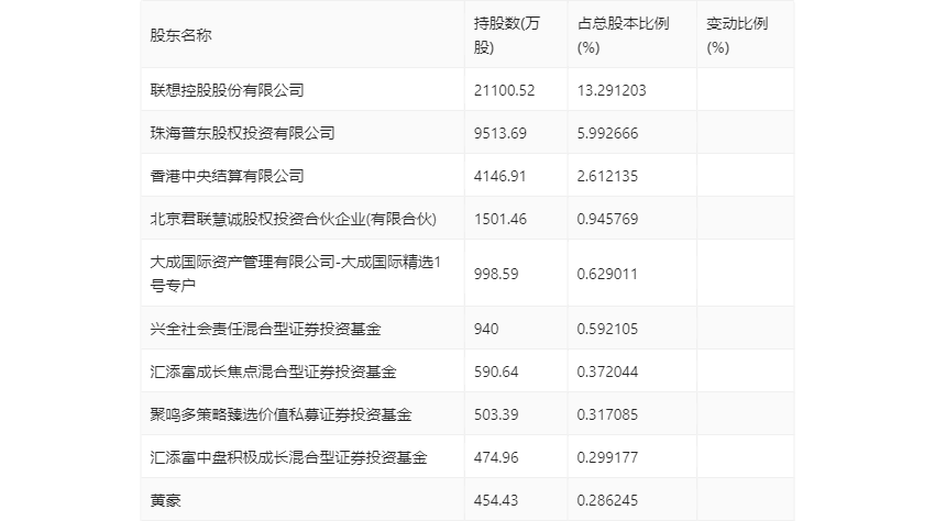 年报显示,2023年年末公司十大流通股东中,新进股东为兴全社会责任混合型证券投资基金、汇添富成长焦点混合型证券投资基金、聚鸣多策略臻选价值私募证券投资基金、汇添富中盘积极成长混合型证券投资基金,取代了三季度末的德邦物流股份有限公司、刘正侠、张政、中证500交易型开放式指数证券投资基金。在具体持股比例上,香港中央结算有限公司持股有所上升,珠海普东股权投资有限公司、北京君联慧诚股权投资合伙企业(有限合伙)持股有所下降。