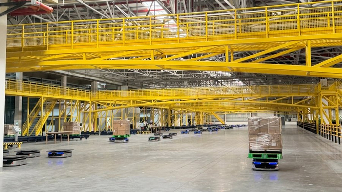 在关键作业环节,一系列无人化、智慧化、数字化技术的应用让效率与安全实现双重提升。货物收运环节,该货站引入RFID射频识别技术,货物与托盘信息可实现秒级绑定赋码,全面推动受理全流程无纸化;安检环节搭载AI智能辅助判图系统,通过X光机自动成像与AI算法精准识别,有效提高违禁品判图效率;驳运环节大规模使用轻载AGV无人自动导引车,依托智能导航系统精准对接货板,实现高精度、全天候的定位搬运,同时通过重载集装器AGV及配套设备设施,实现从组板台至立体货架交接台的驳运任务无人化;仓储环节搭载国内首台立体穿梭存储系统通过多台升降机与穿梭车协同作业,在24米高立体货架中实现货物快速精准存取,并行作业效能实现倍数级增长。